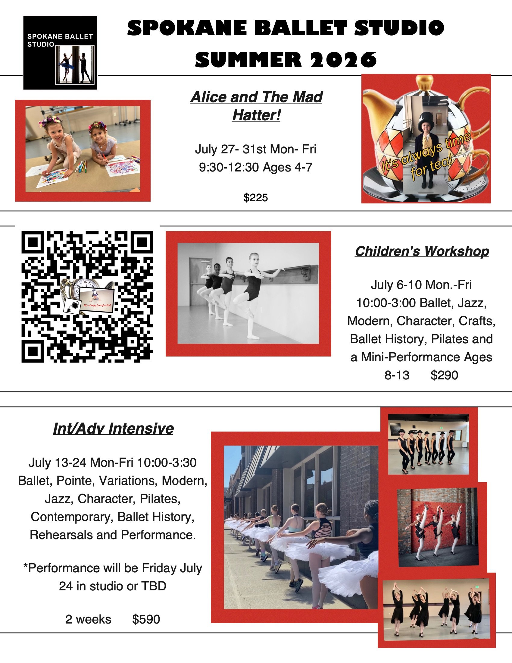 Spokane Ballet Studio is committed to teaching the art of ballet for ages three to adult. It is our endeavor to teach ballet in a way that provides the student with proper classical technique and their own drive to improve. Spokane Ballet Studio will provide an atmosphere dedicated to the success of each student.